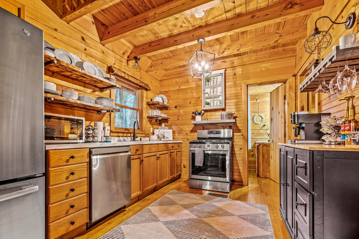 Dobro došli u utočište Smokies! Ova luksuzna prekrasna nova brvnara (stara samo 4 godine, izgrađena 2020. godine) ima izloženo deblo s prekrasnim visokim plafonima katedrale kako bi donijela prirodno osvjetljenje. Knotty Pine jezik i žlijeb s otvorenim tlocrtom. Potpuno novi namještaj ukrašen rustikalnim modernim dizajnom, ali ugodnim ugođajem. Masažna kada na terasi kako bi gosti mogli uživati u pogledu na prirodu ili se okupati ispod zvijezda. Ili se opustite na trijemu s mrežom i još uvijek uživajte u boravku vani, ali u hladovini od sunca ili kiše