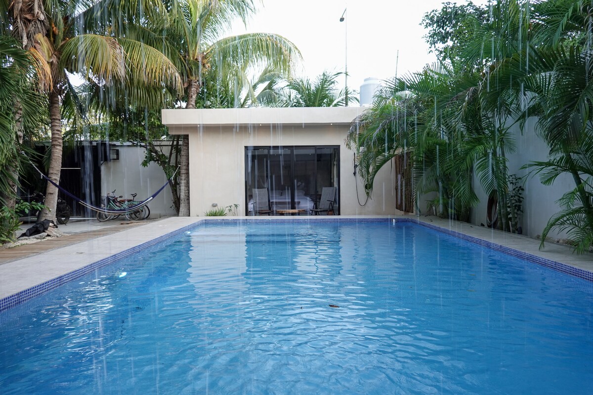 @ thestrelitziaproject 🏆 The highest rated Airbnb in Playa ⭐️ Fully en-suite smart studio room with kitchenette within a private home valued at $ 1m+ Wake up in a memory foam bed to views of a stunning natural cenote and infinity pool with your own private outdoor breakfast bar & terrace, 4K TV, Netflix included, Alexa control lighting, iPad controls, Starlink WiFi, motorized blackout blinds, kitchenette, and more. Nudimo i iznajmljivanje automobila! Raspitajte se o potencijalnoj izgradnji prije nego što rezervišete!