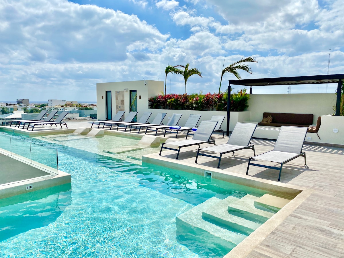 Escape to Playa del Carmen in our stylish studio, centrally located 5 minutes walking to Mamita's Beach. Steps to Quinta Avenida, and all of Playa's vibrant attractions. Fantastic amenities: infinity pool, jacuzzi, gym, coworking space. Book now and secure your dream Mexican holiday. Relax and make yourself at home. ***Click the heart <3 in the upper-right corner of listing to add to wishlist. Share with family and friends for later.