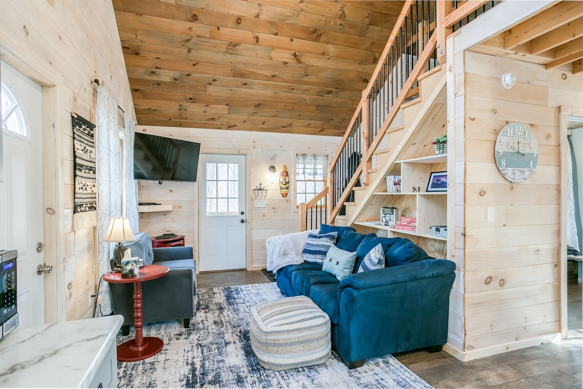 Neka bude jednostavno na ovom mirnom i centralno lociranom mjestu. Nalazi se na vinskoj stazi Cayuga, sa stazom za vino Seneca udaljenom 8 milja. Putujte dugim šljunčanim prilazom do moderne seoske kućice skrivene među drvećem. Uživajte u mirnim logorskim požarima, opustite se u masažnoj kadi, gledajte Netflix ili Disney plus na našem pametnom televizoru ili ponesite svoje omiljene plave zrake/DVD-ove sa sobom za gledanje. Koliba ima prekrasan otvoreni tlocrt s potpuno opremljenom kuhinjom za sve vaše potrebe kuhanja i potpuno opremljenim kafićem.