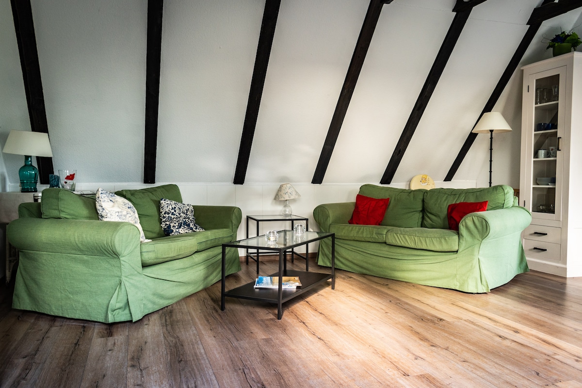 Naš stan se nalazi u nekadašnjem dnevnom boravku starog i opsežno renoviranog Gulfhofa, u podnožju nasipa, usred prirodnog rezervata. Visoki plafoni, debele grede, veliki drveni prozori s odličnim pogledom na istočni frizijski pejzaž i moderan dekor s velikom pažnjom posvećenom detaljima čine ovaj stan mjestom za spuštanje i opuštanje.