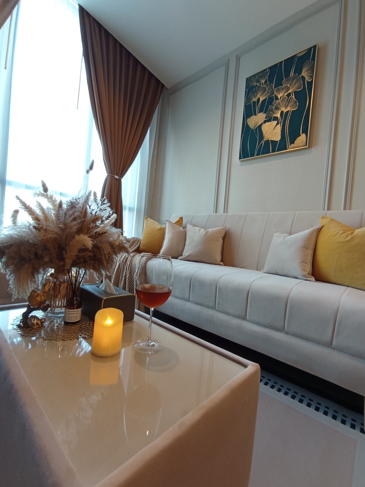 Ovaj luksuzni apartmanski hotel je okružen mnogim kafićima, restoranima i preduzećima. Udaljen je 5 km od stanice BTS Ekkamai. Tržni centar Gateway Ekamai (3 km)i pozorište Siam Niramit, Bangkok (7 km) i Big C - Ekkamai Piong (2,8 km) Moderni, luksuzno uređeni apartman s 2 spavaće sobe je prostran i udoban, s prozorima od poda do stropa i pogledom na grad. Tu je dnevni boravak s mekanim baršunastim sofama koje se mogu podesiti za ležanje kako biste mogli udobno sjediti i opustiti se uz 55-inčni TV i Wi-Fi brzine 500/500 Mbps. Možete gledati filmove, slušati muziku i udobno raditi. ^^
