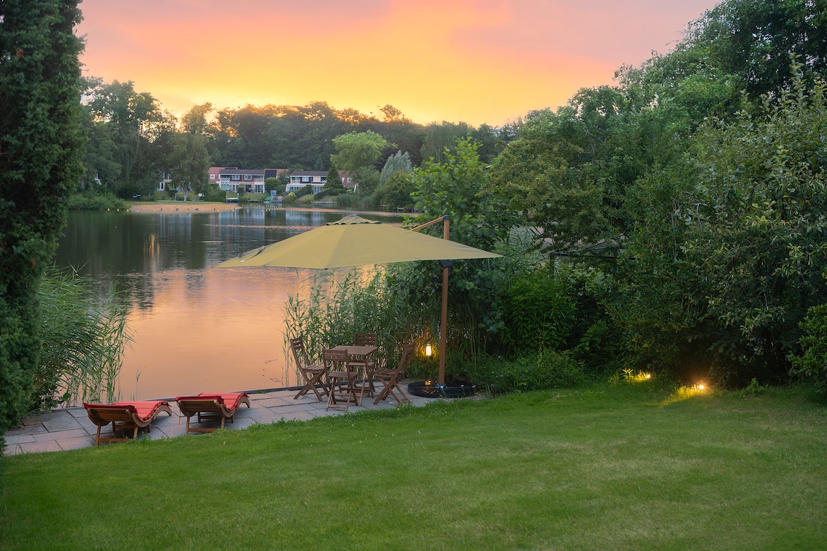 Elegantno uređena kompletna seoska kućica uz jezero, idealna za porodice i parove. Uživajte u romantičnim zalascima sunca na natkrivenoj terasi s pogledom na jezero. Dvije spavaće sobe i zasebna garderoba s kaučem na razvlačenje mogu primiti do 6 osoba. Moderna kuhinja vas poziva da zajedno kuhate. Sup i bicikli su besplatni za korištenje. Savršeno za rekreaciju, prirodu i elegantne večeri uz vodu. Bazen za plivanje i zabavu se također mogu slobodno koristiti.