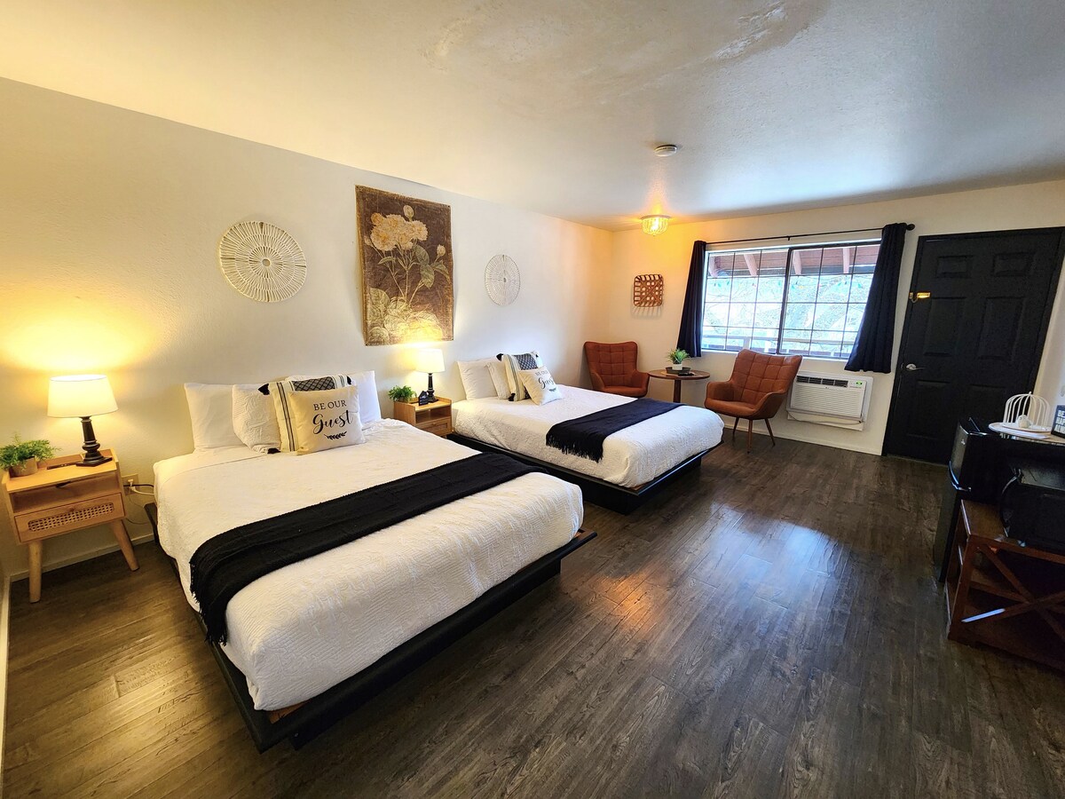 Šarmantan, jedinstven smještaj. The Wanderlust je boutique motel s pojedinačnim privatnim apartmanima. Samostalni dolazak/odlazak s vlastitim privatnim vanjskim ulazom. Uključuje: 2 bračna kreveta, 1 prilagođeni krevet (najbolje za goste 5'0" i ispod), mini frižider, Keurig w/kafu, Smart TV, digitalne brave na vratima. Mi smo kućni ljubimci! Naknada od 25 USD po KUĆNOM LJUBIMCU naplaćuje se NAKNADA od 25 USD - neotvoreni kućni ljubimci naplaćuju 250,00 USD PARKING-Ovo uključeno parking mjesto nalazi se na glavnom parkingu Naknada za dodatna vozila iznosi 25,00 USD.