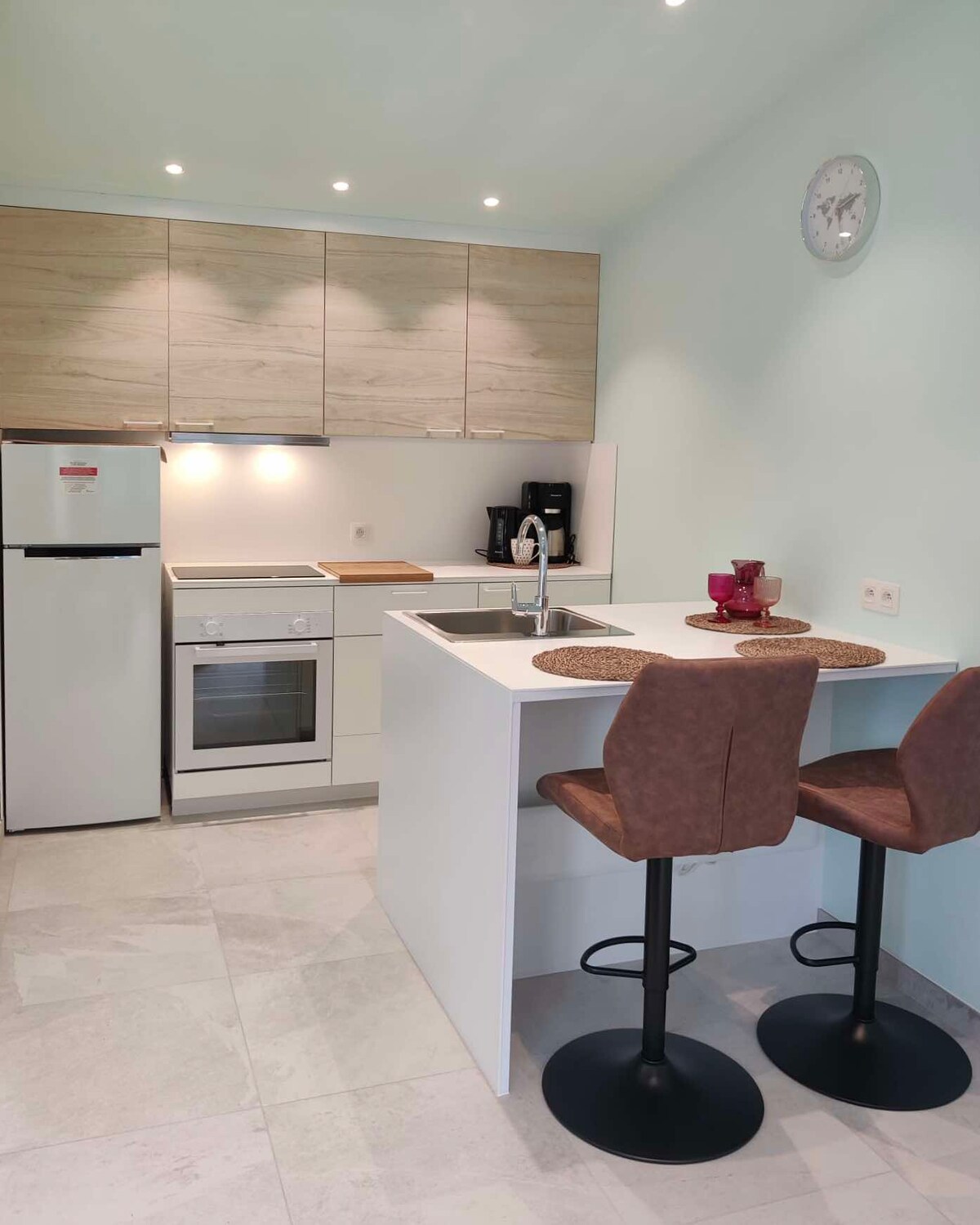 Prekrasan kompletno renoviran stan na 7. spratu s fantastičnim pogledom na more iz prostranog dnevnog boravka. Hrast parket, lijepo kupatilo i kuhinja, potpuno opremljeni. 2 spavaće sobe s balkonom. Vrlo topli i lijepi materijali koji se koriste. Dođite ovdje i uživajte u prekrasnom pogledu na more. Restorani i prodavnice su u blizini. Ponesite peškire i posteljinu ili ih možete iznajmiti kod nas po cijeni od 15 eura. U blizini Brugesa.