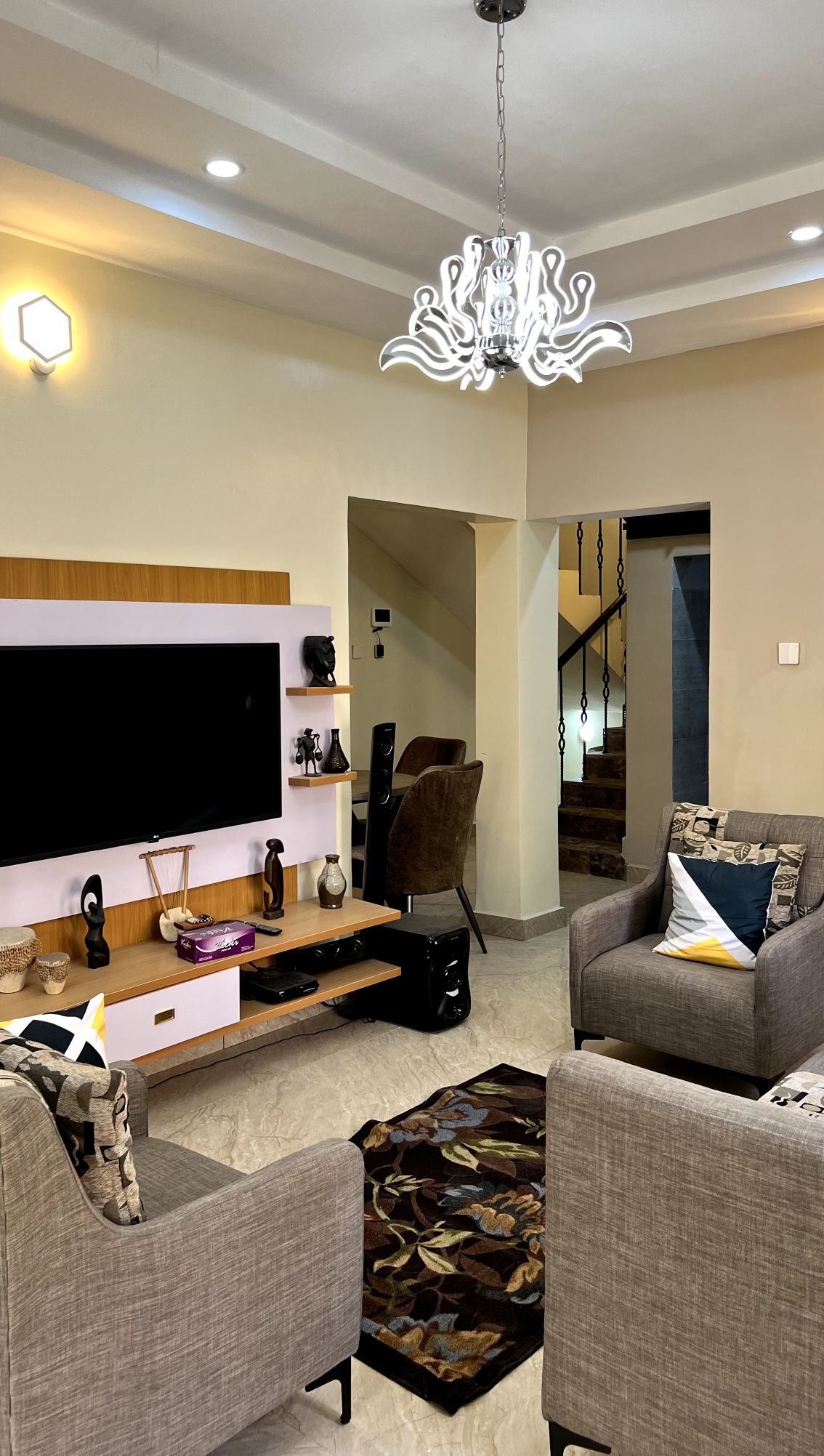 The Penthouse offers a unique, spacious, family-friendly stay in the quiet Amawbia area of Awka. Enjoy modern comfort with a fully equipped kitchen, walk-in closet, 32" TV, and a patio featuring its own TV and half bath for guests. With 24/7 security patrol and surveillance at the entrance, you’ll enjoy privacy, safety, and a luxurious experience throughout your stay.