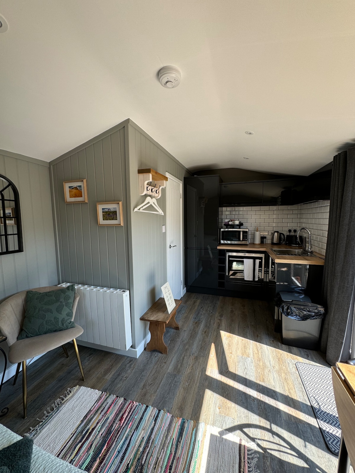 Lovely cosy wood cabin. Double bed (4”0) TV, sofa, shower cubicle, WC and wash hand basin. Backing on to a lane leading to Bothenhampton nature reserve. Walking distance to West Bay Harbour and into Bridport Market town. Great coastal walks and cycle trails all along the south west coastal path. Bridport Golf club is 1/2 mile away, we also have some highly rated local restaurants, bars and pubs Guests are welcome to use the gardens and our sea view decking.