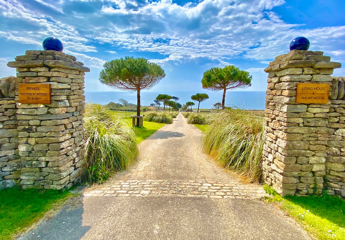 5* Luxury Dorset Seaside Cottage with 200m frontage on to Chesil Beach; the UNESCO World Heritage Jurassic Coast. Short House; newly re-fitted, large living/dining/kitchen, 2 double bedrooms with ocean views and 2 classy bathrooms. Options for two additional John Lewis auto-inflatable single beds, and a crib/cot, increasing capacity to 6 people. A peaceful idyllic 'Stop the world, I want to get off' getaway, but only 15 mins from the charming market town; Bridport.