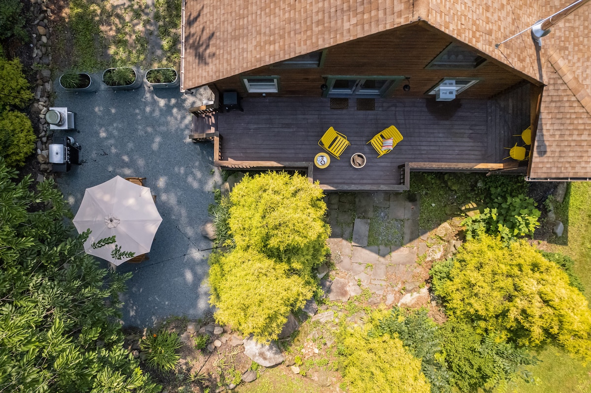 Prošetajte se pod visokim drvećem u mirnom šumovitom hektaru koji okružuje našu udobnu brvnaru inspirisanu alpinom sa savremenim boemskim detaljima. Spavajte na spratu pod dubokim krovnim prozorima, posmatrajte divlje životinje kroz naše velike prozore sa slikama ili se sklupčajte pored vatre na rustikalnom zaklonjenom trijemu. Sanjarite na našoj visećoj ležaljci ili večera na otvorenom i iskoristite naš roštilj. Po vedroj noći, lako je promatrati zvijezde kroz visoka stabla, možda dok tostirate sljezove kolačiće.