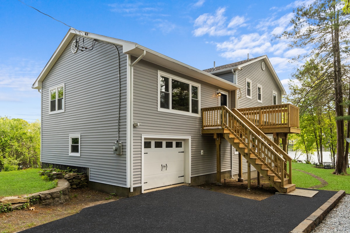 Stvorite uspomene u ovoj renoviranoj oazi uz jezero prikladnoj za porodice! Jezero je s 3 strane objekta! Pogled na jezero s gotovo svakog prozora! Uključena je dodatna seoska kućica od 600 kvadratnih metara koja je u potpunosti renovirana za vaše uživanje sa stolom za bilijar. Koristi se kao igraonica i studio za jogu!