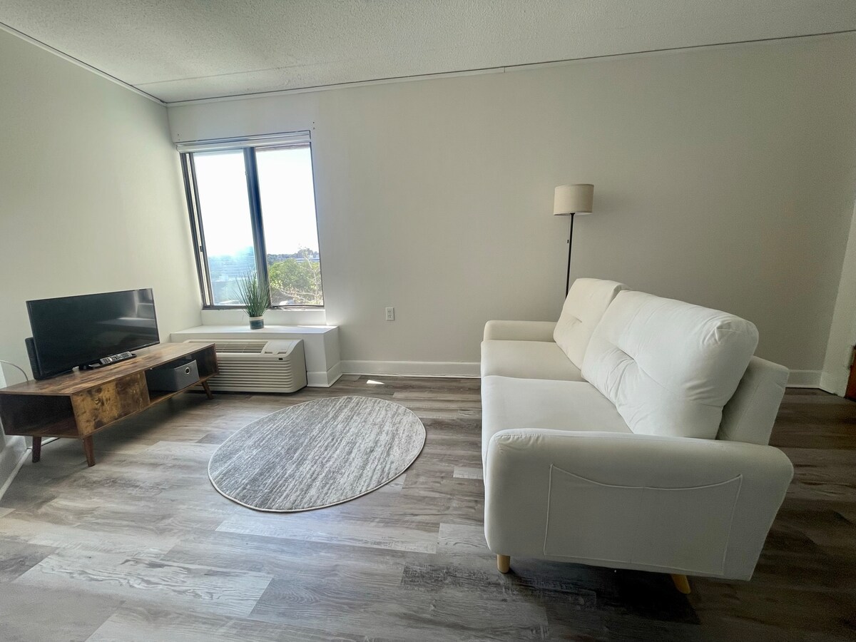Ovaj svijetli i udobni stan nudi savršeno utočište, pružajući svu udobnost doma. Praktično se nalazi u centru Stamforda, na pješačkoj udaljenosti od trgovine, restorana i živahnog noćnog života. Samo 3 minute od međudržavnog autoputa 95 i 4 minute vožnje od stanice Metro-North Stamford, imat ćete jednostavan pristup New Yorku i šire. Uživajte u besprijekornom dolasku s bravom za ključeve, brzim internetom i glavnom osnovnom opremom. Imate pristup fitness centru i krovu.