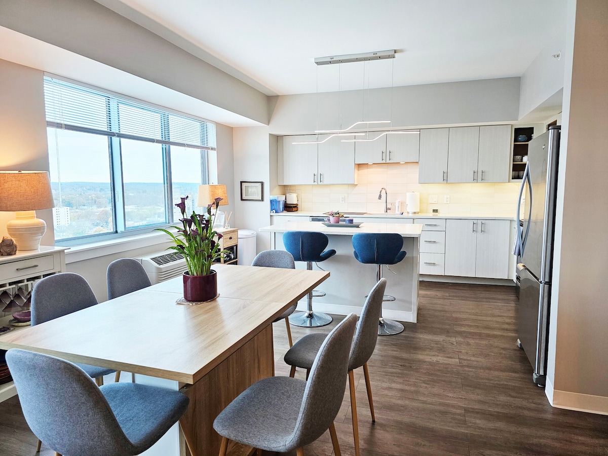 Dobro došli u svoj luksuzni smještaj White Plains, moderno utočište s jednom spavaćom sobom sa svim udobnostima doma i sadržajima odmarališta s pet zvjezdica. • Dubinsko čišćenje prije svakog boravka • Zelena krovna terasa, coworking salon i privatne mahune • Igraonica s virtuelnim golfom, fliperom i shuffleboardom • Terasa bazena u stilu odmarališta s roštiljem i salonom uz kamin (zatvoreno tokom sezone!) • Najmoderniji fitnes centar s časovima na zahtjev • Koraci od restorana i prodavnica; lagana šetnja do Metro-Northa do New Yorka (45 minuta)
