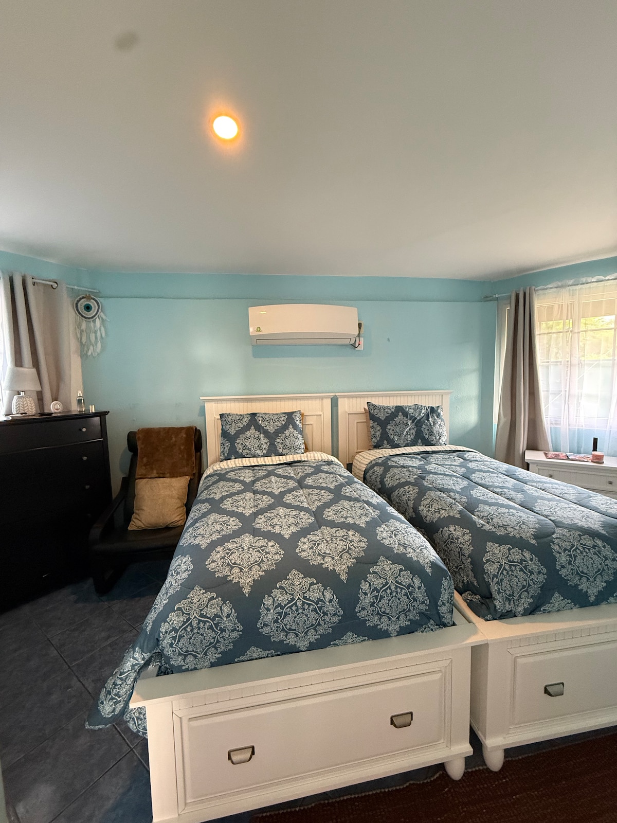 Ovo je privatni stan na prvom spratu hotela Crown Point Beach, smješten u 7 hektara vrtova s pogledom na Store Bay Beach , 5 minuta od aerodroma s besplatnim parkingom, besplatnim internetom i 24-satnim osiguranjem. U stanu mogu spavati 4 odrasle osobe ili 2 odrasle osobe i 2 djece STARIJE OD 5 godina i ima potpuno opremljenu čajnu kuhinju, kupatilo s tušem. Peškiri su obezbijeđeni i usluga sobarice svaki drugi dan. Tu se nalazi biblioteka karipskih autora i sef.