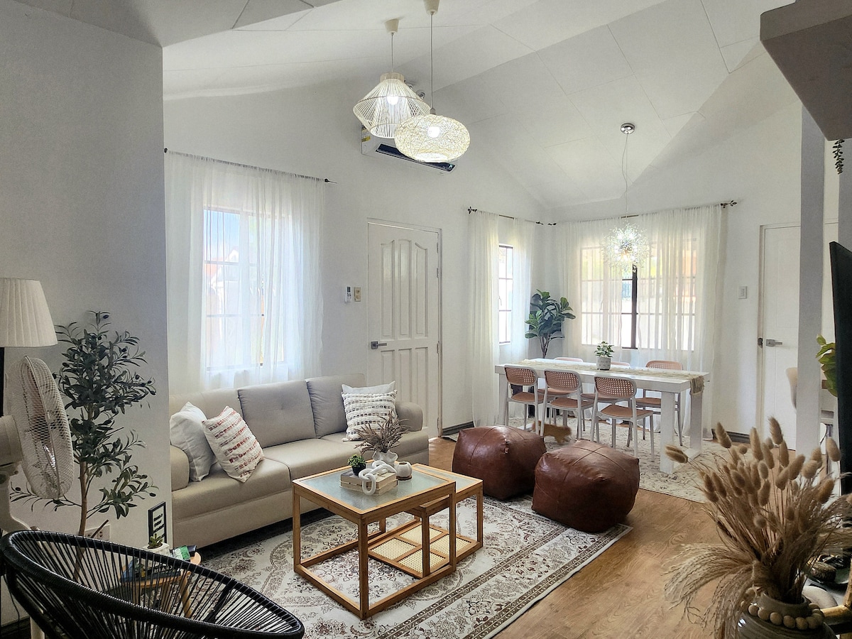 Forget your worries in this spacious and serene space. Brand new house. 4 bedrooms plus 1 entertainment room (Netflix). With working space. 2.5 Bath, one with bath tub & hot shower. Modern kitchen & 5 burner gas range. Good for staycation & to celebrate special occasion. Ideal for 7 pax but can be stretched to 12 pax (@additional rate of 350 pesos per head). Close to Airport and 10-15 mins away to shopping malls. Close to Ruins Tourist atttaction. Definitely a home away from home!
