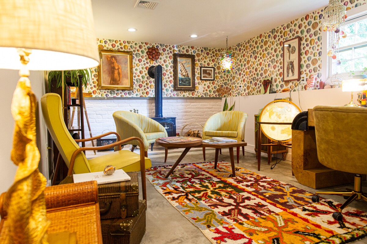 Legendarni bungalov i bazen na plaži iz 70-ih smješteni su na privatnoj parceli od 3/4 hektara okruženoj zrelim hrastovima i zimzelenim biljem. Naš dom su namjerno uredili dizajneri enterijera, ispunjen kolekcionarskim predmetima, umjetninama i antikvitetima. Prigrlite osjećaj „Hamptons Bohemia”, s nadsvođenom dnevnom sobom, dovoljno mjesta za sjedenje, kaminom na drva i vanjskim prostorom s prostranom terasom od cedrovine i grijanim bazenom. Nalazi se na pješačkoj udaljenosti od plaža u zaljevu i 8 minuta vožnje do plaže Ponquogue i mjesta za surfanje.