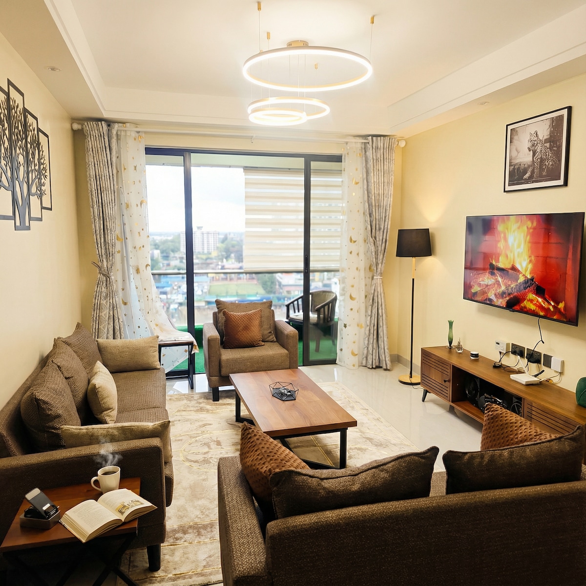 This is your go-to place for an authentic, spacious, and stylish stay in a peaceful high-rise neighborhood surrounded by nature. Enjoy breathtaking aerial views, fresh air, and a cosy, contemporary furnished apartment with all modern amenities in upscale Kileleshwa. The apartment features a fully equipped kitchen and laundry, stylish ensuite bedrooms, and sparkling bathrooms, all designed to give you a true homely feeling.