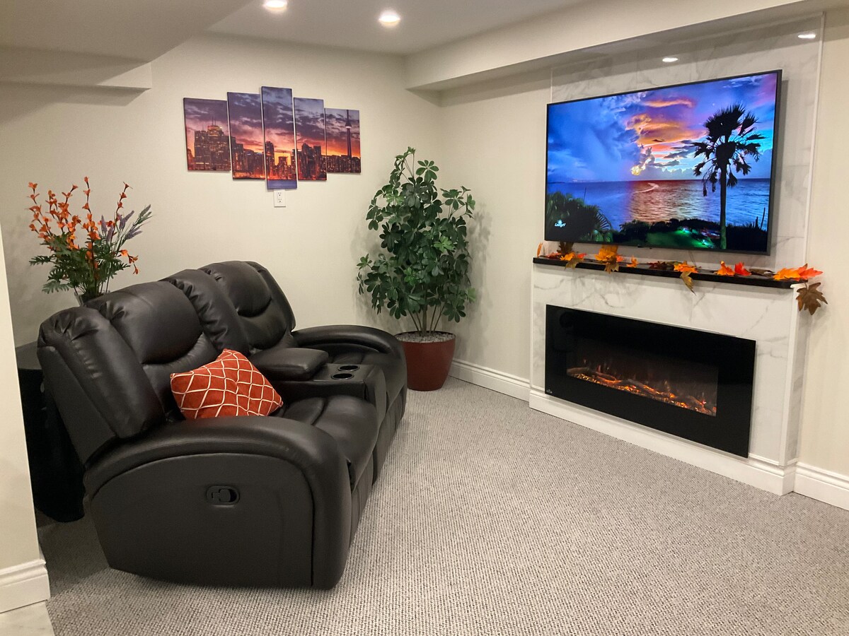 Uživajte u jednostavnom pristupu trgovinama, restoranima i zabavnim sadržajima s ove savršene lokacije. Samo 5 minuta vožnje do željezničke i autobuske stanice s brzim, praktičnim prevozom do centra Toronta, kanadske čudesne zemlje itd. Ovaj apartman za goste na donjem spratu je potpuno opremljen vlastitim vešom, čajnom kuhinjom s mini hladnjakom, Indukcijskim 2 plamenika Kuhinjska ploča, mikrovalnom pećnicom, tosterom i aparatom za kafu. Udoban kamin, HD TV sa ekranom od 60"i luksuzni bračni krevet (širok 180-200 cm) Sigurno okruženje s pješačkim stazama i parkovima.