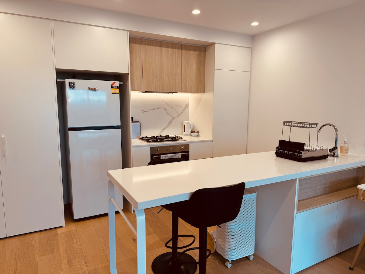 Dobro došli u ovaj studio apartman u Box Hill Triou, koji se nalazi u srcu Box Hilla. Izuzetno je pogodan za život, prevoz i putovanja, a idealan je za parove, poslovne putnike, posjete rođacima ili prijateljima ili kratkoročne boravke. Studio se nalazi u gornjem prizemlju i ima dobro prirodno svjetlo i tišinu.Soba ima 1 bračni krevet (širine 150–179 cm) koji može udobno primiti 2 gosta.Ukupni raspored je hotelski, prostor je kompaktan, ali praktičan, čist i uredan, pogodan za efikasan i jednostavan boravak. Kuća ima privatno kupatilo (tuš) i čajnu kuhinju sa indukcijskim kuhalom, mikrovalnom pećnicom i tosterom za jednostavno kuhanje i svakodnevnu upotrebu. Uključuje i 1 besplatno parking mjesto, što je rijetkost u samom centru Box Hilla, idealno za goste koji sami voze. Lokacija je najveća prednost ovog smještaja: U pješačkoj udaljenosti od Box Hill Centrala, velikih tržnih centara, supermarketa i međunarodnih restorana Tramvajska stanica je na vratima i okolo Oko 3 minute hoda do bolnice Box Hill, savršeno za medicinsku pratnju ili posjete Voz je udaljen oko 20 minuta od Melbourne CBD-a, putovanje i razgledanje su vrlo praktični Okružen azijskom i međunarodnom hranom, ovo je jedno od najstarijih naseljenih područja Melbournea