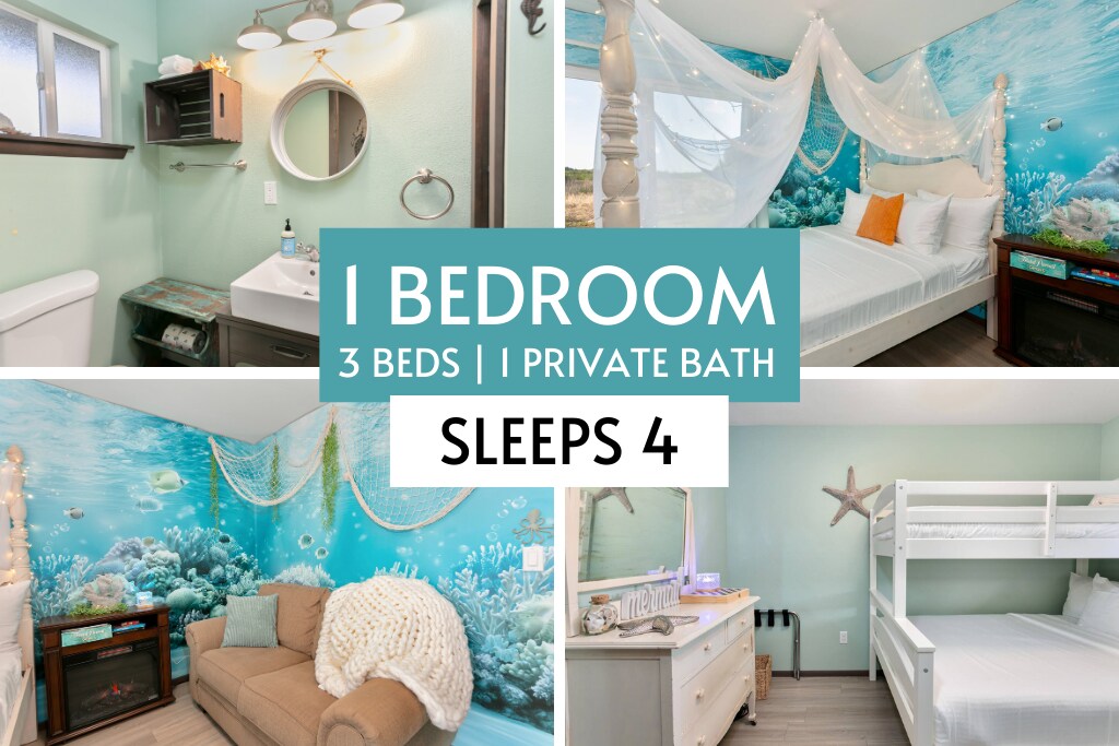 Opustite se, uživajte u tišini ili se prošetajte do plaže! S pogledom na glavnu ulicu, zabavnim nautičkim dekorom, detaljima i plišanim bračnim krevetom, za tren oka ćete se osjećati dobrodošlo. Ova HOTELSKA SOBA je opremljena aparatom za kafu, mini-frižiderom i mikrovalnom pećnicom. Nalazi se na pješačkoj udaljenosti od plaže, trgovine mješovitom robom i Navy Getawaysa. Blizu Seabrooka, šopinga i restorana. *Imajte na umu: Ako planirate pripremati ili zagrijavati obroke, morat ćete imati svoje tanjire itd.