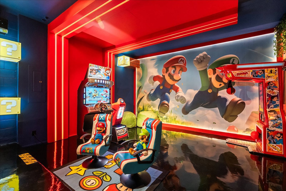 Welcome to your ultimate Nintendo getaway where every room is artfully and thoughtfully designed with a unique Super Mario theme. From custom decor to playful details, every corner is a tribute to the beloved world of Mario and friends. With classic Nintendo consoles at your fingertips, you’ll have everything you need to relive your favorite gaming memories in style. Unwind, play, and immerse yourself in the colorful world of Nintendo - TRUE SUPER MARIO ENTHUSIASTS ONLY :)