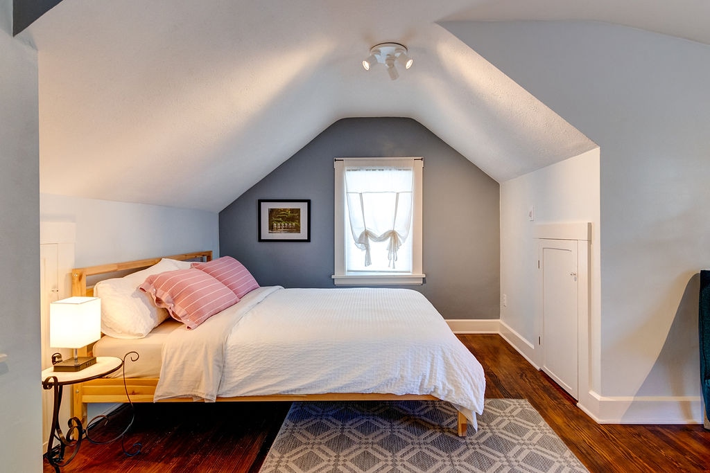 Stan se nalazi iznad odvojene garaže. Prostrani tlocrt je moderan i svjež, praonica rublja na licu mjesta, potpuno opremljena kuhinja, garderoba i veliko privatno kupatilo, ovaj stan izgleda kao dom. Dugoročni najam je dostupan po sniženoj cijeni. Stan se nalazi u prometnoj ulici („prometna” za mali grad) u kojoj ćete čuti automobile i motocikle kako prolaze. Uzmite to u obzir prilikom rezervisanja.