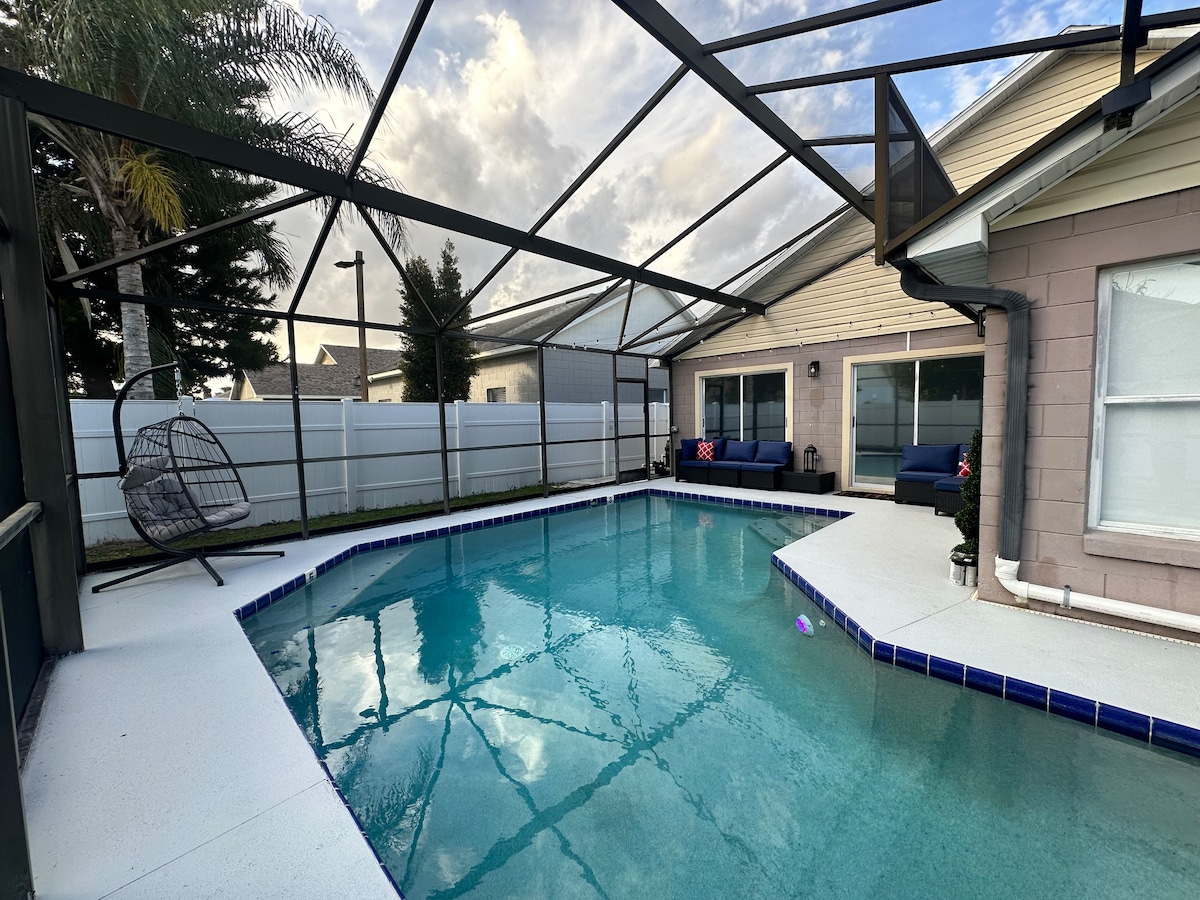 ☞Superhost 9 years ☞ Large Salt Pool (W/ heated option $ Oct-April) ☞3 Bedroom 3 Full Bath W/extra 4th queen daybed ☞ Easy access to the 417 East West express way (toll rd.) to get around Orlando ☞Easy smart lock self Check-in ☞ Driveway Parking ☞ Luxury bedding ☞65in Smart TV with Netflix in TV room ☞Dimmer mood lighting ☞Illuminated pool & landscape lighting ☞Pool Lounge Floats ☞Full Kitchen ☞Dining & Picnic table seats 6 to 8 guests ☞Hi speed 231mb internet ☞Uber Eats Food Delivery
