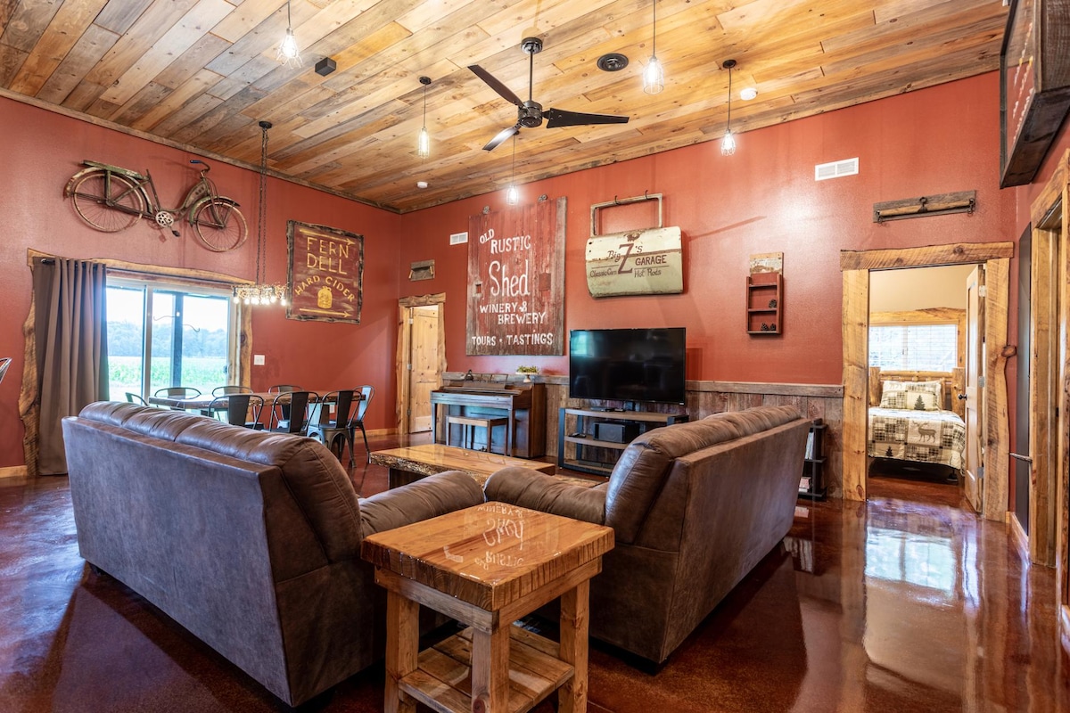 Barndominium s kozama, masažnom kadom, šumom i rijekom