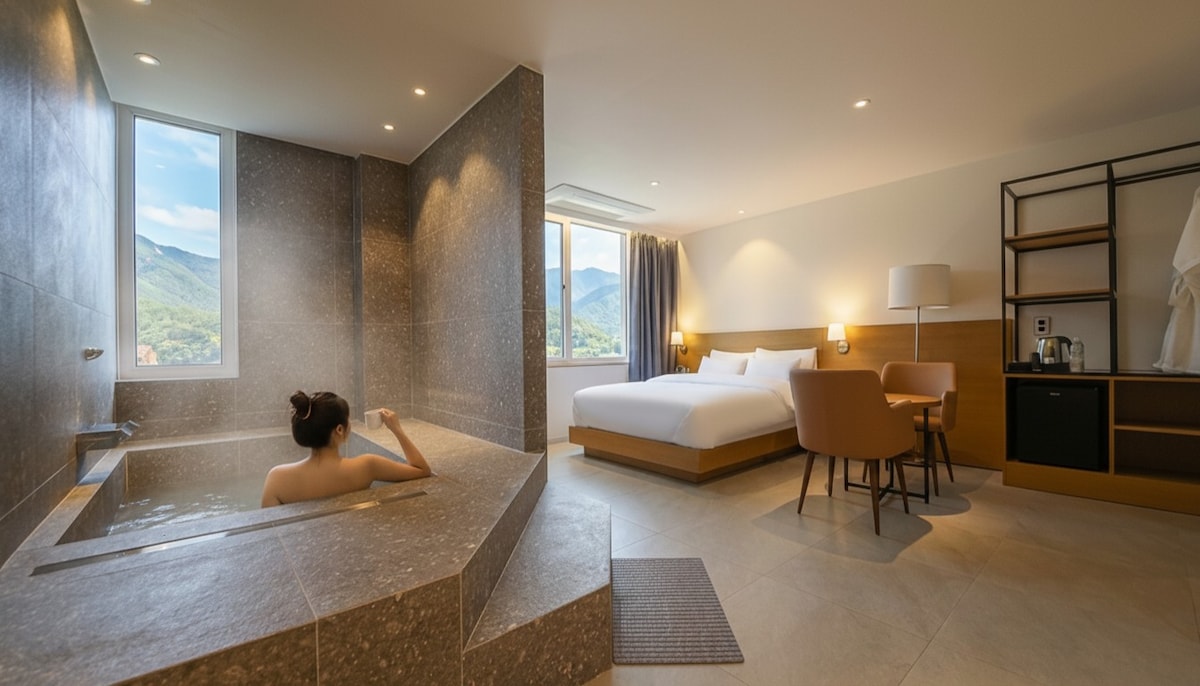 🏨 숙소 소개 원주 중심의 감성 호텔, 아늑하고 세련된 객실에서 편안한 휴식을 즐기세요! 고속버스터미널·편의시설 도보권에 있어 교통·편의성 모두 최고입니다. 🛏️ 객실 • 깔끔하고 감각적인 인테리어 • 편안한 침대 & 필수 어메니티 (TV, 무료 Wi‑Fi) • 일부 객실엔 욕조 또는 루프탑 공간 옵션도 제공 • 전 객실 금연, 쾌적한 실내 환경 제공