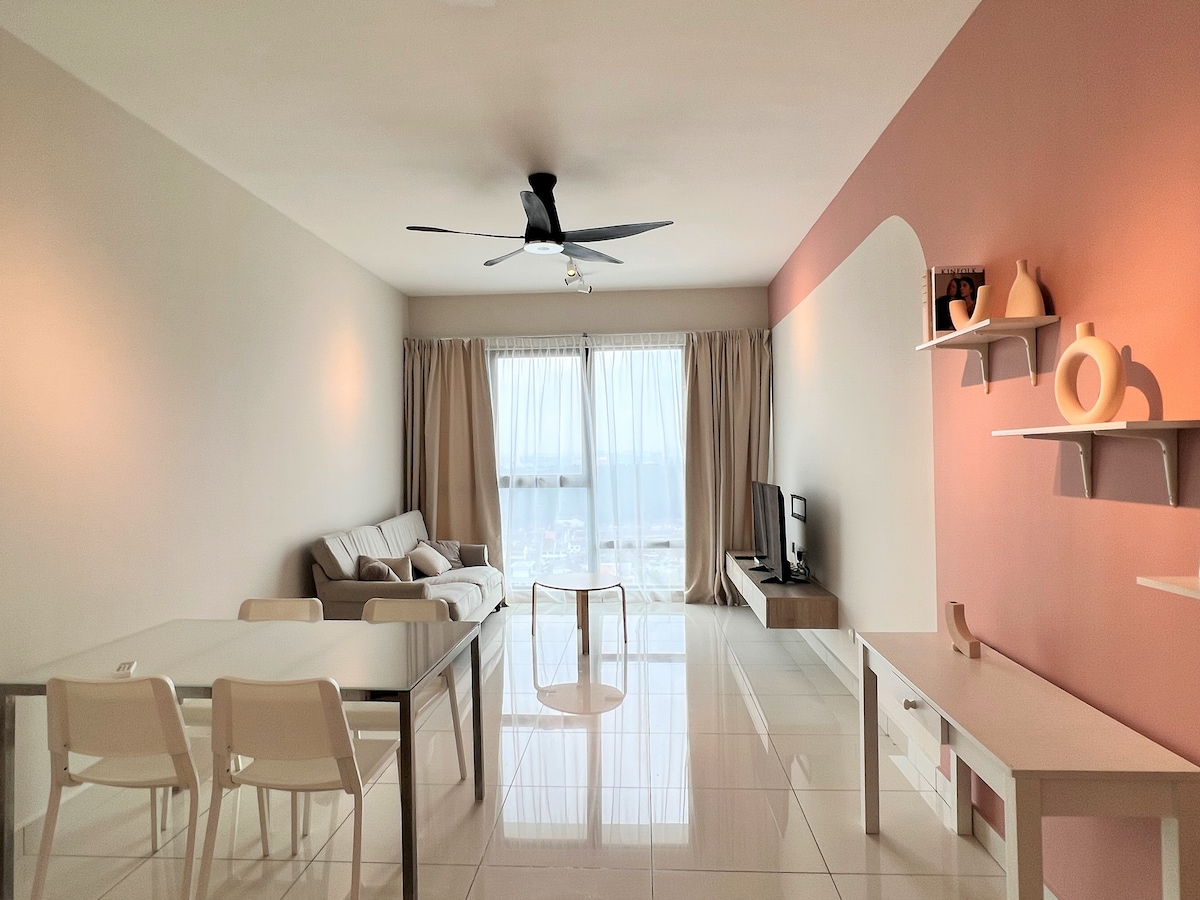 (1+1 BR i 1 kupatilo) Savremeni moderni i udobni kondominij u srcu JB centra grada. Pogodno za porodicu, prijatelje i poslovnu grupu od 4 osobe. **5 minuta do CIQ-a, City Squarea, KSL-a, Pelangija i Larkina **8 minuta do Mid Valley Southkeyja, Larkin Sentrala i Sentose **15 minuta vožnje do trgovačkog centra Paradigm, Sutere, Skudaija i Mount Austina ✔ 4K SmartTV ✔ Brzi Wi-Fi, radni stolovi s produžnim utikačem ✔ Veš mašina ✔ Airconds u svakoj sobi. ✔ Atari konzola, mahjong i društvene igre. ✔ BESPLATAN parking za 1 automobil