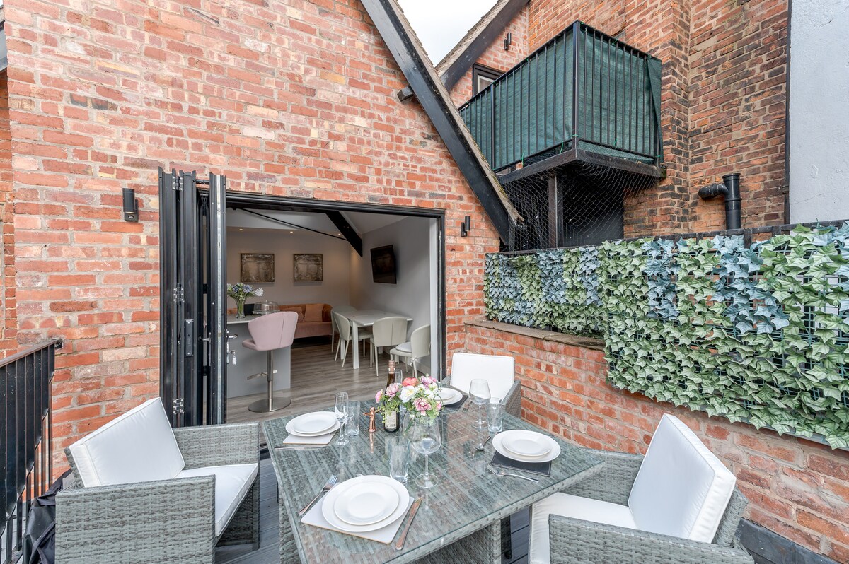 Modern apartment in the heart of Shrewsbury. Close to shops, bars and the scenic river Severn. The perfect place to enjoy the medieval and vibrant town of Shrewsbury. Newly renovated kitchen and bathroom to a premium standard. Relax and unwind in a cosy cellar living space. Fully private (not shared access) courtyard with late afternoon sun. Enjoy a relaxing stay or use as a base for exploring Shrewsbury and surrounding Shropshire area. The accommodation is only accessible via stairs.