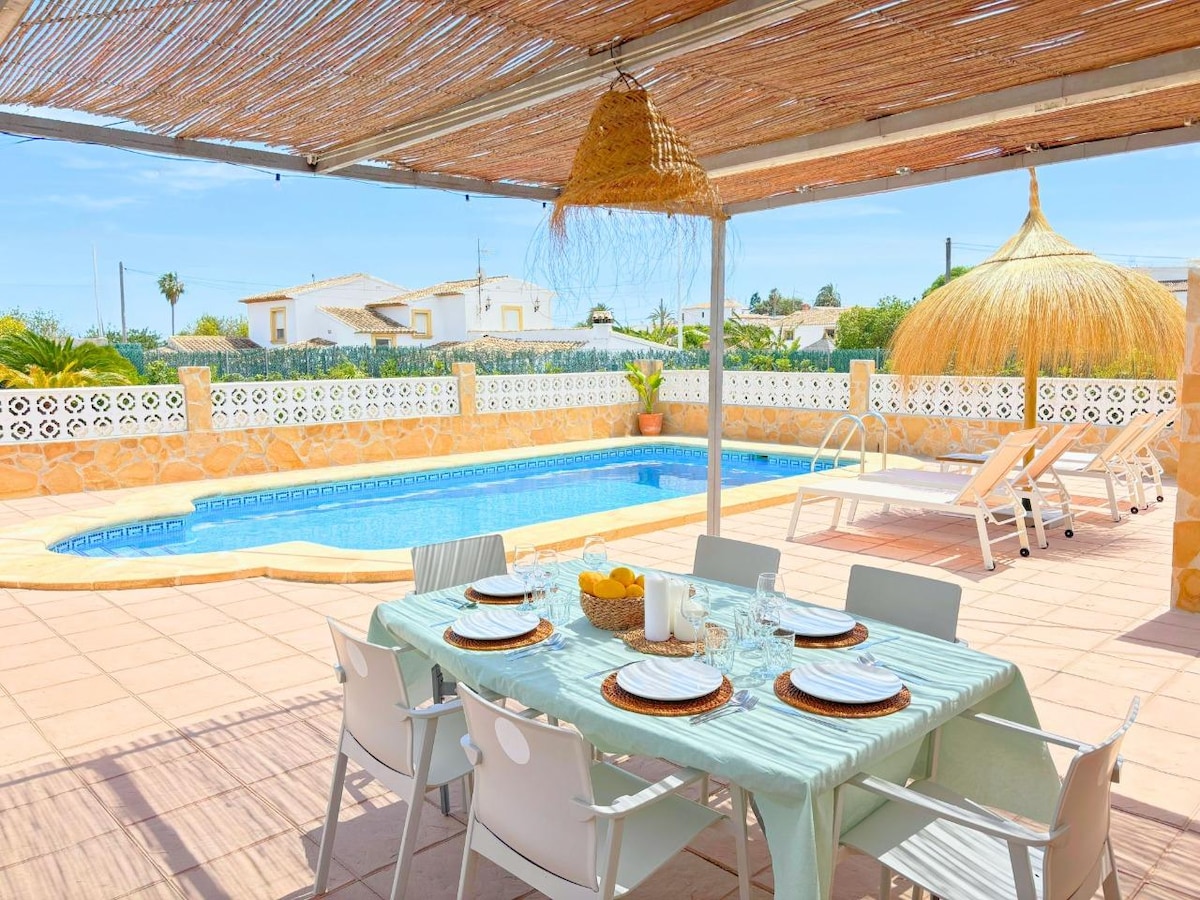 Prekrasna vila u mediteranskom stilu s četiri dvokrevetne sobe, velikim privatnim bazenom, vrtom i velikim vanjskim prostorima. Nalazi se 2 km od plaže (6 minuta automobilom) i 1 km od historijskog centra Jávee. Kuća ima 3 kupatila, stakleni trijem, stakleni trijem, prostranu dnevnu trpezariju s kaučem na razvlačenje i 2 kuhinje, od kojih se jedna nalazi vani na drugom otvorenom trijemu s roštiljem i velikim stolom za obroke na otvorenom. 📞 Six-Uno-Nueve-Ocho-Cinco-Tres-Dos-Cero-Uno