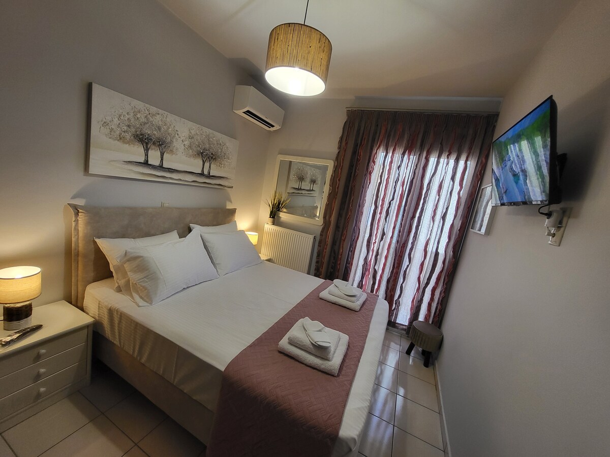 Šarmantan dvosobni stan u srcu starog grada Herakliona, savršen za porodice, parove ili digitalne nomade. Udobno može primiti najviše 3 gosta. Ima brz Wi-Fi, namjenski radni prostor i potpuno opremljenu kuhinju. Samo 1 minuta hoda do obale i 10 minuta do živopisnog centra grada. Savršena baza za istraživanje glavnog grada Krita!