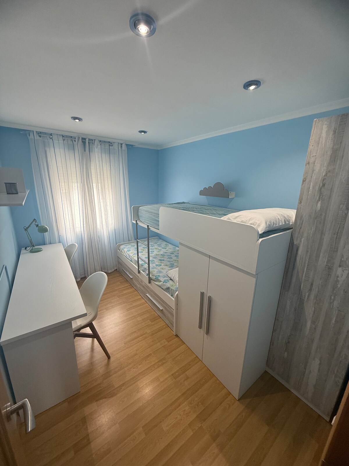 En este alojamiento se respira tranquilidad, pasa una velada romántica, relájate con toda la familia o conviértela en tu estancia de trabajo. Una planta con una cama de 160cm y dos individuales en litera en la misma estancia Consta de chimenea de leña, suelo radiante, un baño con ducha y todo lo necesario para pasar unos días acogedores y tranquilos. Dispones de café, té, infusiones muy variadas.. Con posibilidad de más habitaciones (preguntar precio), hasta 9 personas total