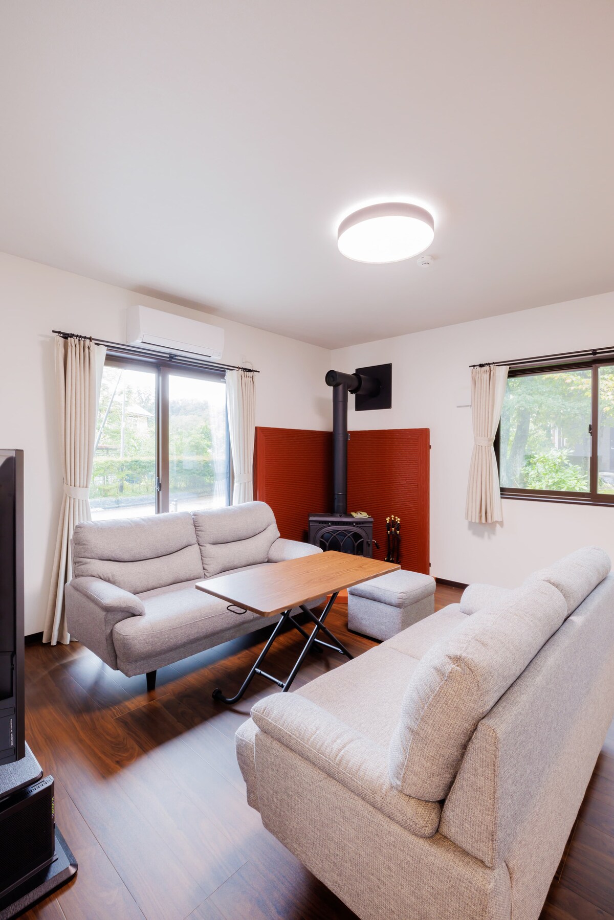 Ovo je nova seoska kućica izgrađena 2022. godine. Ulazeći u elegantnu kuću s crnim vanjskim zidovima, kameni hodnik koji vodi do visoke plafonske dnevne sobe učinit će da zaboravite na svakodnevni život. Vanjska kupka je okružena drvećem, a zimi možete uživati u opuštajućoj kupki s pogledom na snijeg. Uživajte u privatnom pozorištu u dnevnoj sobi i spavaćoj sobi sa projektorom od 100 inča. Prikazi i stolovi su također dostupni za vaš radni prostor.