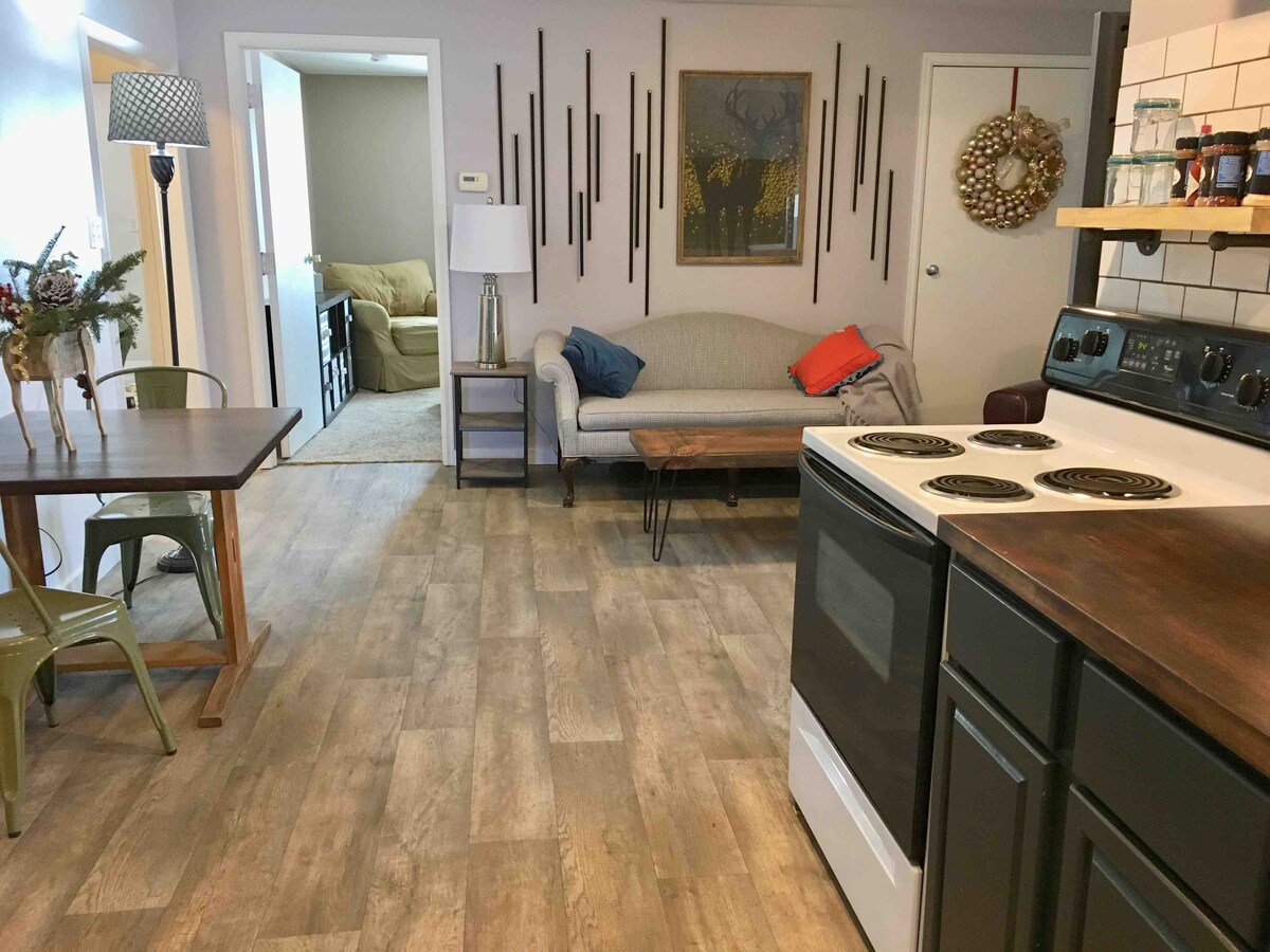 Dobivamo odlične recenzije s razlogom! Rustikalna industrijska, 2 spavaće sobe, dnevni boravak, puna kuhinja - sve što vam je potrebno za brzo putovanje na produženi lov ili skijaško putovanje! Jedan sprat, bez stepenica, Wi-Fi, kupatilo, klima uređaj. Samo nekoliko blokova od lokalne pivovare, kafića Wild Goose i sajmišta okruga Routt! 25 minuta do skijanja svjetske klase u Steamboat Springsu. Fenomenalni lov, ribolov, ljetne riječne cijevi i poznata teritorija za promatranje ptica! Prikladno za kućne ljubimce, naknada za pse od 20 USD - ukupno za 2 psa.