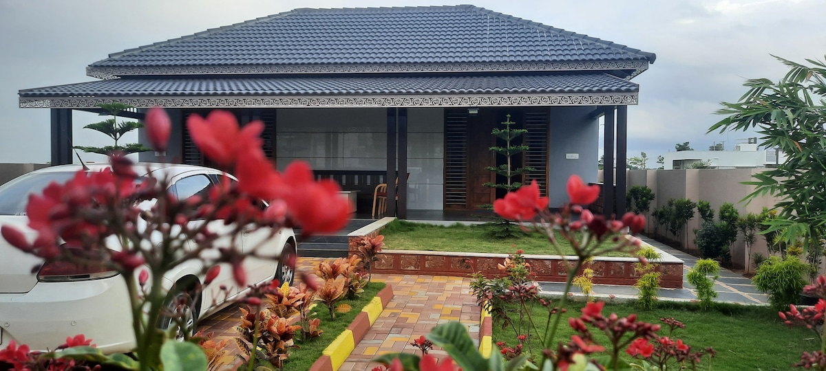 Saanvi's je jedinstvena kuća za odmor smještena u mirnom rasporedu Mysorea. Smješten na parceli od 4000 kvadratnih metara, ima prostrani trijem, bujni vrt i samo jednu udobnu sobu s odvojenom kuhinjom, što je idealno za privatnost. Kuhinja je u potpunosti opremljena plinskim štednjakom, posuđem, staklenim posuđem i još mnogo toga. Nalazi se na putu do hrama Nanjangud i u krugu od 8–9 km od glavnih atrakcija kao što su Chamundi Hills, zoološki vrt Mysore i Palača. Najprikladnije za porodice; 👪i da, i vaši krzneni prijatelji su dobrodošli!