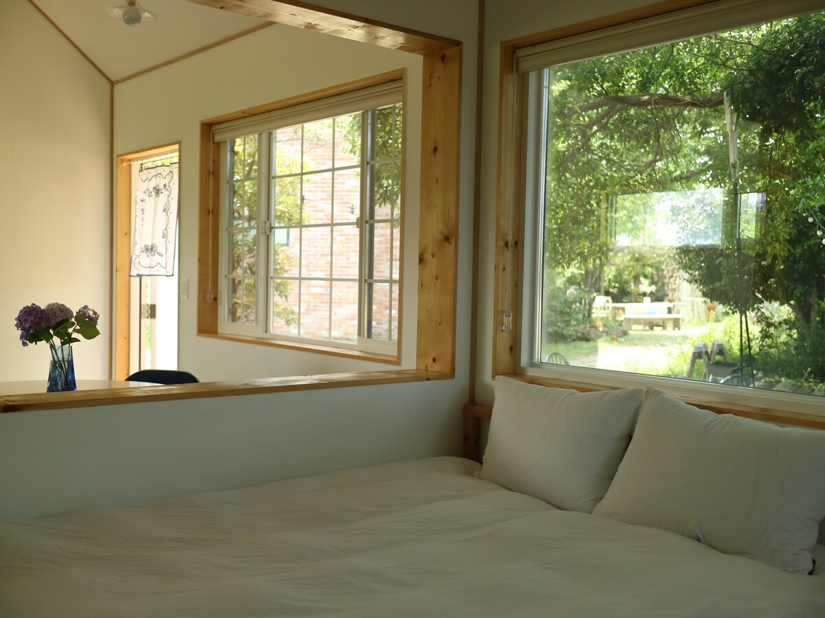 „Nebeska vrata” su smještaj za istinsko opuštanje i istinsko opuštanje s motom našeg doma u Jejuu. Rezervacija za 2 osobe: bračni krevet (širok 150-179 cm) Rezervacija za 3 osobe: Obezbjeđujemo futon za 1 osobu (dušek i navlaka za futon; kada se rezerviše za 3 osobe, primjenjuje se dodatna naknada za posteljinu za 1 osobu). Svaka soba je otvoreni prostor u studio formatu bez zasebnog ulaza. Smještaj je udaljen 25 minuta vožnje od aerodroma Jeju, a na zapadu Jejua pronaći ćete atraktivnu prirodu, kao što su more, oreum i šume. Jutro koje započinje u prekrasnoj spavaćoj sobi u kojoj sjene lišća plešu na jutarnjoj sunčevoj svjetlosti, blagovaonski prostor koji nije ništa lošiji od kućnog kafića i koji će vaš boravak učiniti romantičnijim, predivno drveće koje ispunjava pejzaž kroz prozor, zvuk ptica usred planina i zajedničko dvorište sa svježom zlatnom travom. Osjetite sve ovo i provedite vrijeme na Jejuu :-)