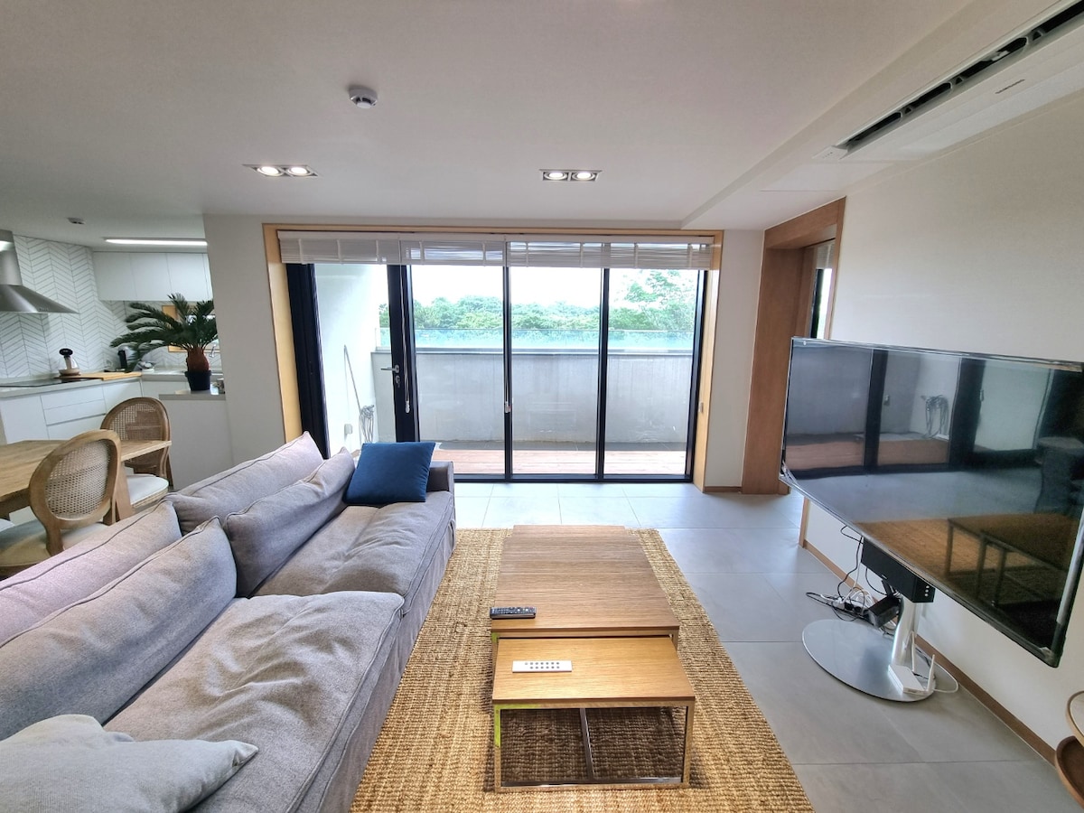 Ovo je odličan smještaj s porodicom i prijateljima Penthouse se nalazi na najvišem spratu 21. sprata i lako je pristupiti vrtu na krovu (na krovu se nalazi zona za fotografije) Možete gledati izlazak i zalazak sunca kroz prozor Gosti kažu da se radi o restoranu s pogledom i da je kraj noći. Ovo je soba s najboljim pogledom na nebeske gradove. Na prvom spratu se nalazi kafić za pse na 1. i 2. spratu Postoji životni objekat u komšiluku, kao što je prodavnica namirnica. Dvokatnica je na dva sprata. Luksuzni krevet u veličini (180x200) na 1. spratu Na 2. spratu su 2 super jednostruka madraca. 🛋Kauč ima dva vrhunska Tongjuk kauča za 4 osobe (ručno izrađeni bong i kaša koji se mogu koristiti kao krevet) i dodatne prostirke. Opremljen je i može primiti do 8 osoba (Dodatne naknade će biti naplaćene od 7 ili više osoba)