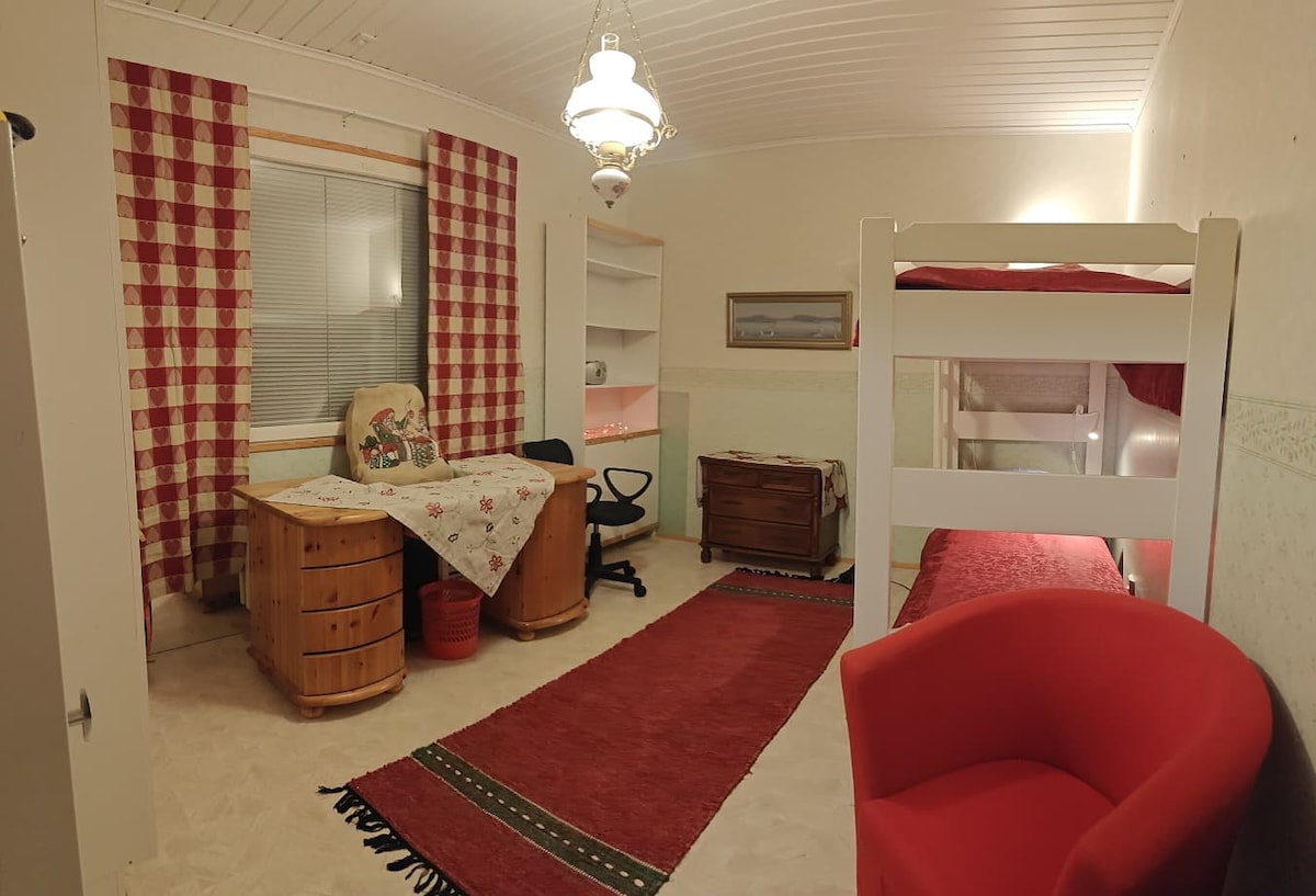 Stan je povezan sa kućom za domaćine. Imat ćete vlastiti ulaz i privatnost. Vaša strana ima WC,tuš i saunu. Nema kuhinje, ali ima fritezu,frižider, mikro put, aparat za kafu i električno kuhalo za vodu, tako da možete pripremiti jednostavne obroke. Sauna je grijana na drva i može se koristiti besplatno. Također je mogućnost parkiranja u toploj garaži. Nalazi se 3 km od centra grada. U krugu od nekoliko stotina metara nalaze se supermarket,autobuska stanica i skijaška staza. Možete besplatno koristiti naše klizaljke,skije i sanjke.