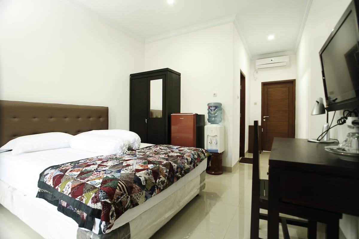 2 Udobna soba s privatnim kupatilom u smještaju s 12 soba. (ne cijela kuća) (Samo soba/bez doručka) S mirnim okruženjem i prijateljskim okruženjem, OMAH WIENNA Homestay se nalazi u gradskom području. Samo 2 minute hoda do najbliže prodavnice. Također možete pronaći restorane i restorane po skromnoj cijeni. 7 minuta vožnje do Tugu Yogye, najpopularnije znamenitosti Yogyakarte. 12 minuta vožnje do ulice Malioboro i tradicionalne tržnice Beringharjo i 18 minuta do palače Yogyakarta Keraton.
