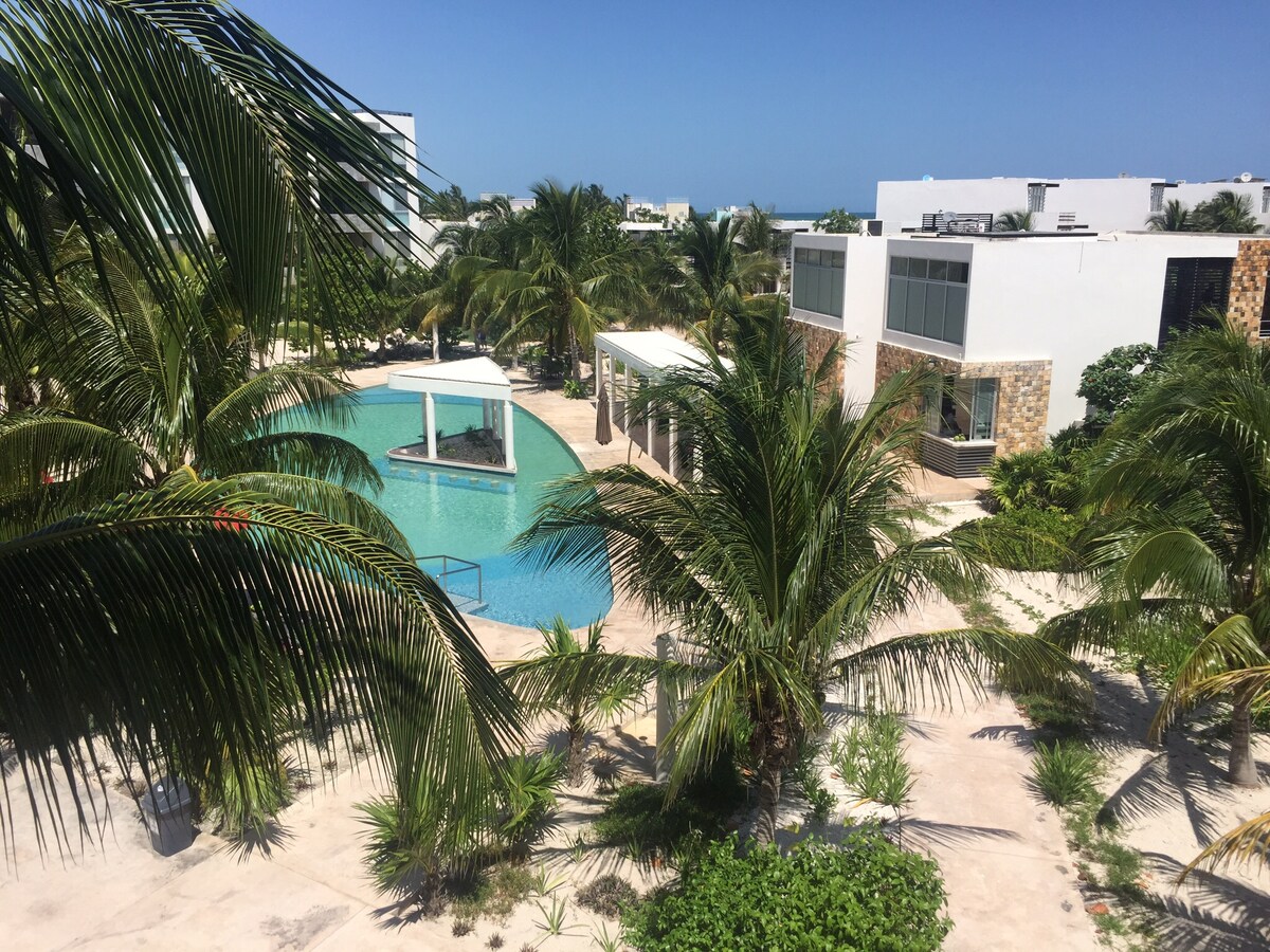 Hermoso apartamento que se encuentra en un complejo de lujo a la orilla del mar a tan solo 25 km de Progreso downtown, 15 km de Chicxulub puerto y 14 km de Telchac. Preciosa vista hacia el mar y hacia las piscinas del complejo. Habitación principal con baño propio, 2 habitaciones con baño compartido, 1/2 baño de visitas. Cuarto de servicio con baño completo. La decoración es tropical, cálida y con muchos detalles La cocina se encuentra completamente equipada Wifi A/C habitaciones Elevador