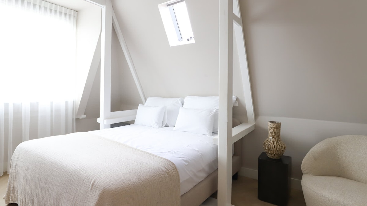 Our boutique hotel in Zaandam is located in a beautifully restored monumental building. Each of the 15 rooms is unique, shaped by the original structure and full of character. We’ve combined timeless architectural details with calm, modern design for a stylish and comfortable experience. With a central location, self check-in, and a peaceful atmosphere, it’s the perfect base to explore the area or unwind in a special setting where history meets modern hospitality.