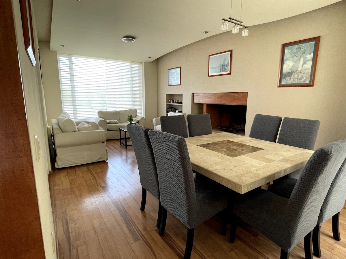 Elegantna kuća s pogledom na ekološki rezervat jer ima balkone i velike prozore koji gledaju na veliki vrt, 2 bloka od komercijalnog hodnika Av. Himalaya: s bankama, apotekama, pizzerijama, pekarnicama, Oxxosom, restoranima, Taqueriasima, crkvom, Starbucksom, Shiroi, Tgi petkom, pekarnicom i čokoladom itd. Stambeno područje se nalazi u zapadnom dijelu grada, a 25 minuta od Međunarodnog aerodroma, 15 minuta od prekrasnog centra grada, ŽIVI SAN LUIS.