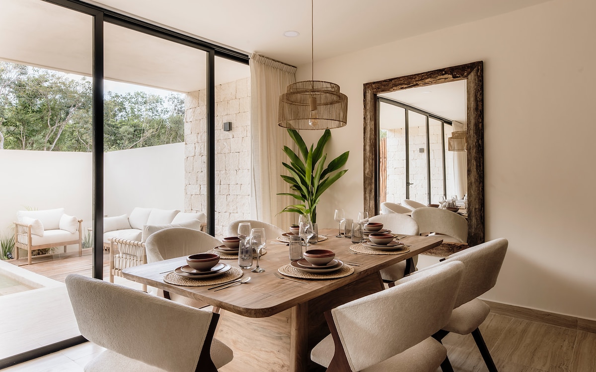 Probudite se uz zvuk ptica u srcu džungle u Tulumu i uživajte u prostranom utočištu dizajniranom za odmor, rad i ponovno povezivanje. Idealno za digitalne nomade i porodice, s brzim Wi-Fi mrežom, klima-uređajem i balkonima s visećim ležajevima. Opustite se na krovu u jednom od malih bazena s pogledom na džunglu, opustite se u bazenima stambene zgrade i istražite obližnje cenote, lagune i plaže. Doživite opuštanje u Tulumu, savršeno za one koji traže modernu udobnost bez gubitka kontakta s autentičnom prirodom.