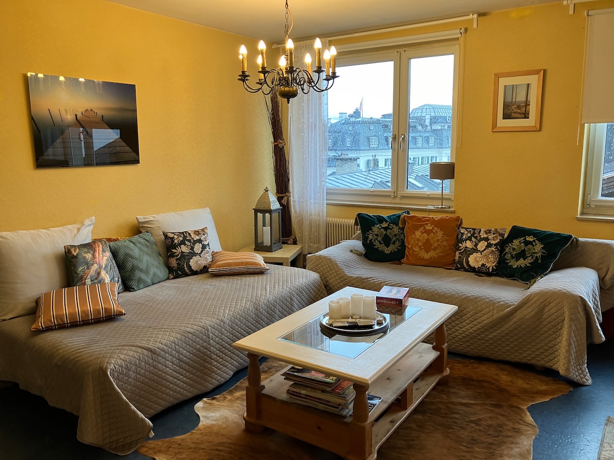 It is a spacious 3-room apartment, which offers space for 4-5 friends/family members. Pets are also allowed. The exact room layout can be found in the gallery. Self-catering is possible through the kitchen, which was renovated in 2019. As the apartment is directly in the centre, there are also many restaurants and cafés in the same street or in the surrounding area. You have a view of the lake from 4 rooms and the balcony. The apartment is on the 4th floor - elevator available.