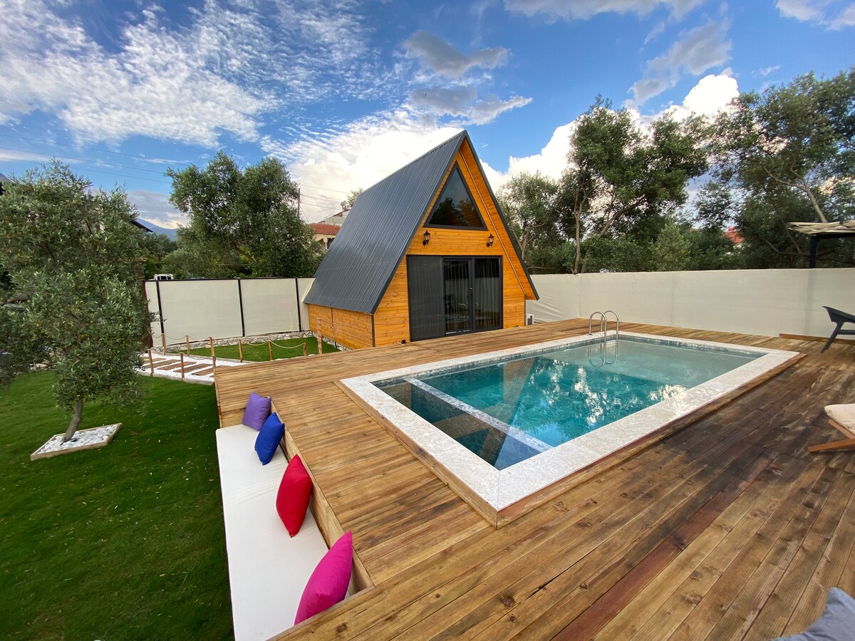 U prirodi. Blizu Dalyana. Kuća s odvojenim vrtom i privatnim bazenom. Sastoji se od 2 spavaće sobe, otvorene kuhinje i kupatila. Naša kuća, površine 75 kvadratnih metara, ima klima uređaj u svakoj sobi. Imamo terasu za sunčanje, chezlon i stol za jelo u vrtu. Postoji internet, TV, mašina za pranje veša, mašina za suđe... To je čista, uredna i dobro održavana kuća i ove godine je postala operativna. Postoji besplatan parking.