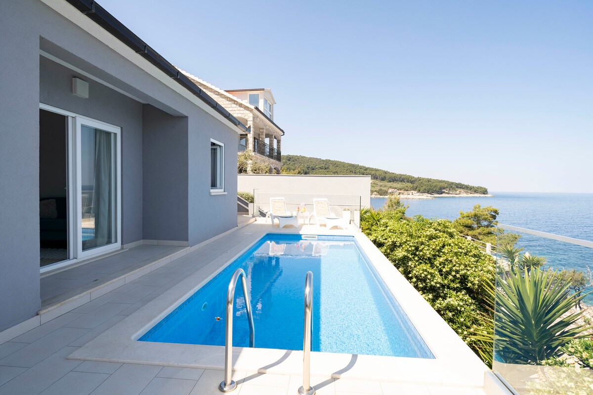 Opustite se u minijaturnoj kući na plaži (30 m2) na otoku Korčuli. Lush garden setting just a minute of the beach. U ovom objektu se nalaze dvije minijaturne kuće. Da biste imali cijeli smještaj za sebe, možete rezervisati obje kuće, ovaj smještaj je za jednu kuću. Zapanjujući i prostrani bazen i roštilj koji dijele s gostima druge minijaturne kuće. Besplatan i funkcionalan unutrašnji i vanjski WI-FI, klima uređaj, TV,privatna terasa. Bazen dužine 9,5 m/dubina 1,3 m. Roštilj, parking za automobile,vanjski osvježavajući tuševi i opuštajuće vrtne viseće ležaljke. Uživajte!